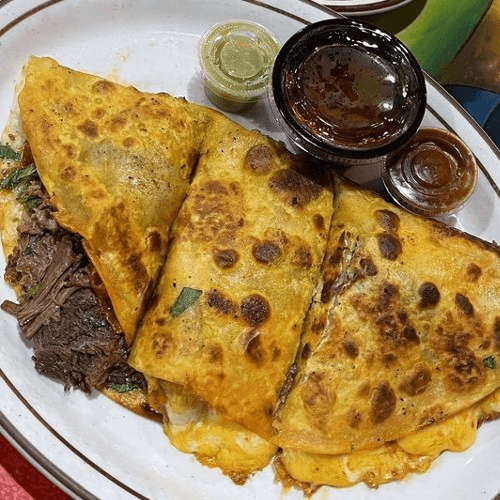 Jumbo size flour tortilla grilled with your choice of meat and melted cheese. Served with a side of rice, beans, pico de gallo, and sour cream