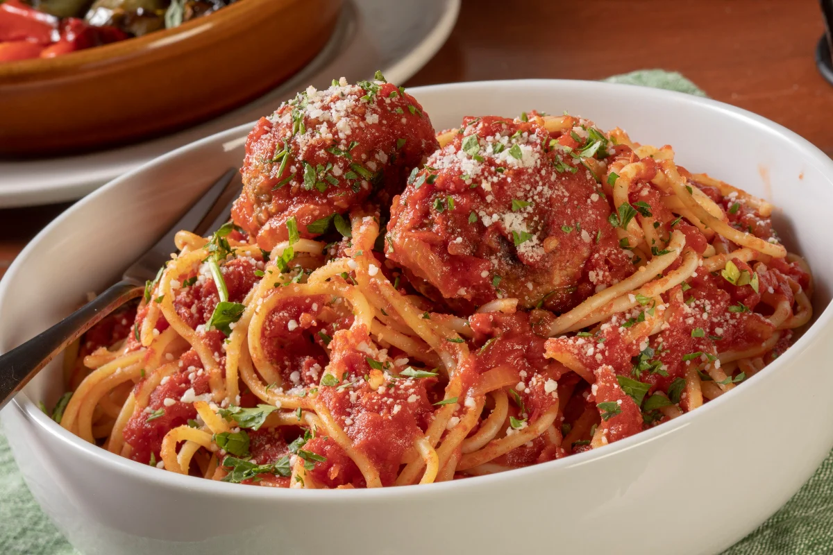 Spaghetti served with house-made meat sauce