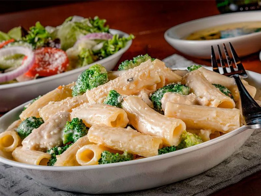 Fresh broccoli, rigatoni, roasted chicken, Pecorino Romano & lemon-garlic cream sauce, served with Insalata & fresh baked rolls