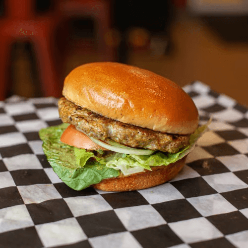 Seasoned ground chicken topped with lettuce, tomato, onion, and house-made avacado ranch, vinaigrette served on a toasted brioche bun